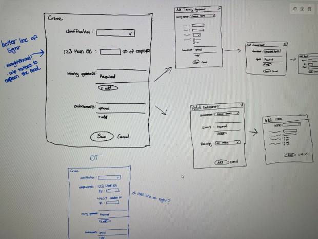 After the usability study, I shared my findings with stakeholders and showed a few UserZoom clips so everyone could see the insights firsthand. I recommended adding coverage part buttons on the hub to improve navigation since the Crime information entry was working well and didn’t need changes. These tweaks were all about making the experience smoother and easier for users.